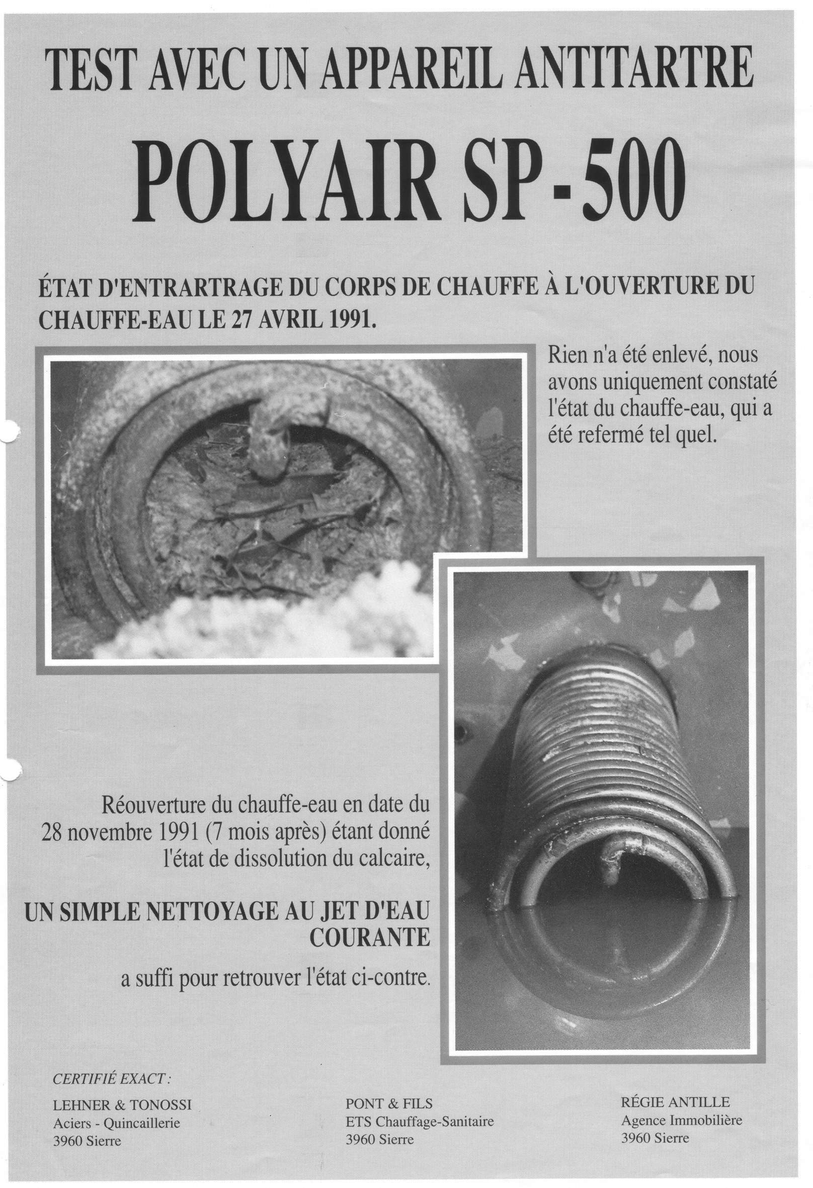 Corps de chauffe d'un boileur (test effectué en 1991) :