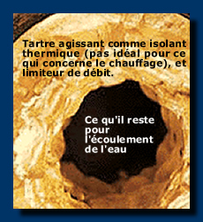 - Temps de chauffe plus long (par exemple corps de chauffe, tuyaux entartrés), car le tartre